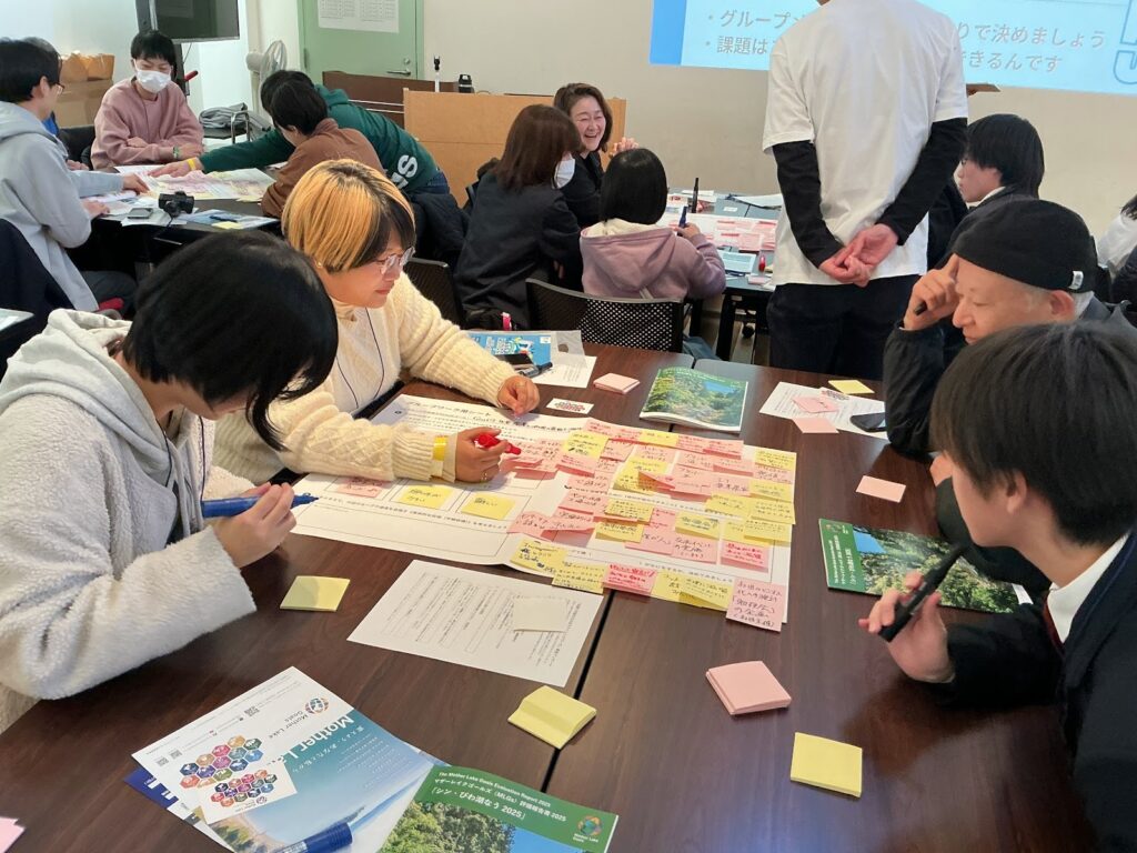 ワークショップでは、マザーレイクゴールズ推進委員会による「滋賀で共創をうみだすチャレンジワーク」を実施しました。10代から60代までの参加者が、琵琶湖や地域課題について多様な視点から意見を交わし、世代を超えた対話の場が生まれました。マザーレイクゴールズ(MLGs)とは、琵琶湖を切り口に持続可能な地域社会を目指す行動目標です。