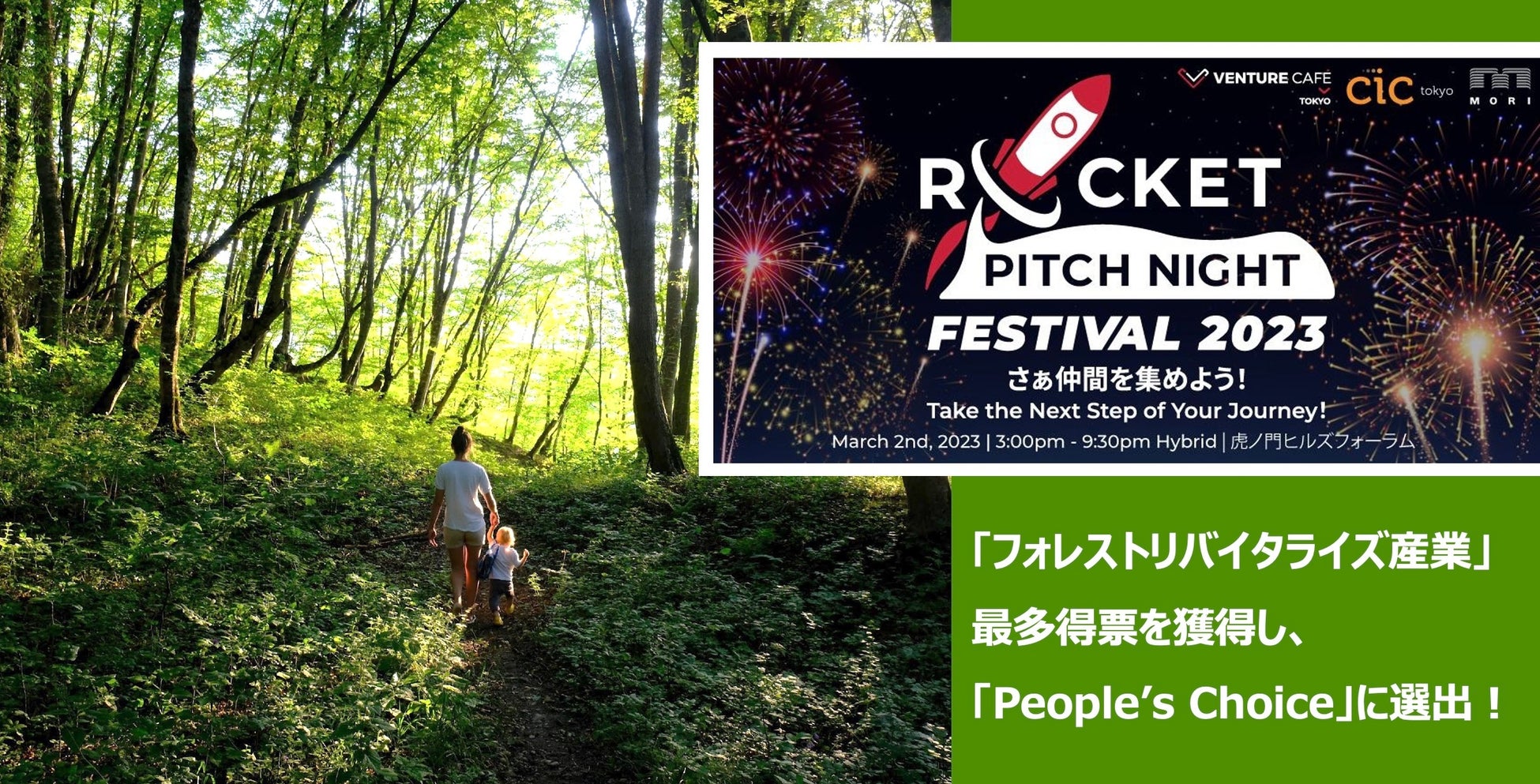 今回のピッチでは「Nurturing Forest Together 〜森と人の森づくり共創〜」というタイトルで、8部門からなる「ROCKET PITCH NIGHT FESTIVAL 2023」の「環境・エネルギー部門」に登壇。フォレストリバイタライズ産業が目指すビジョンを実現させるためのweb3活用について発表しました。